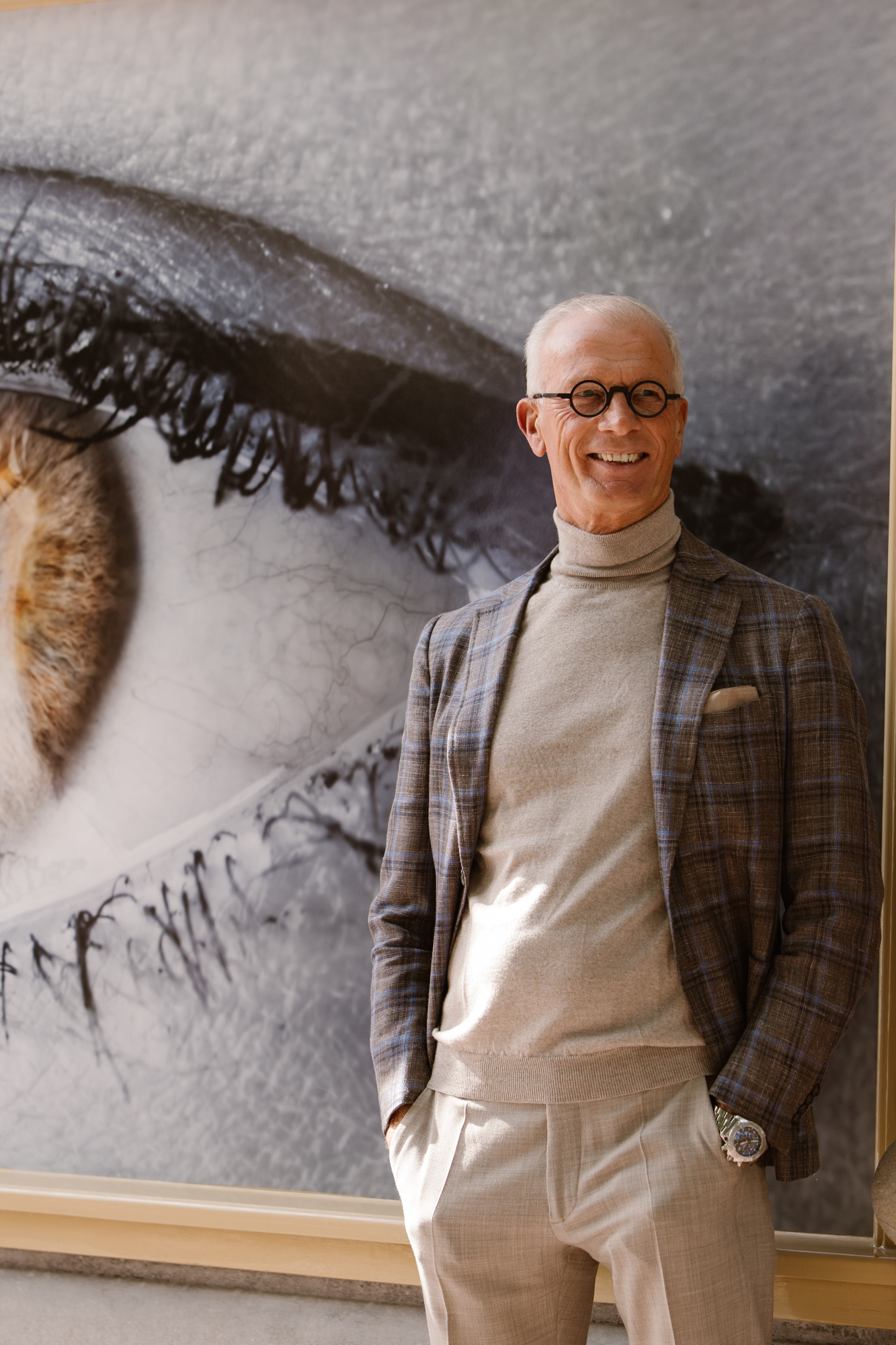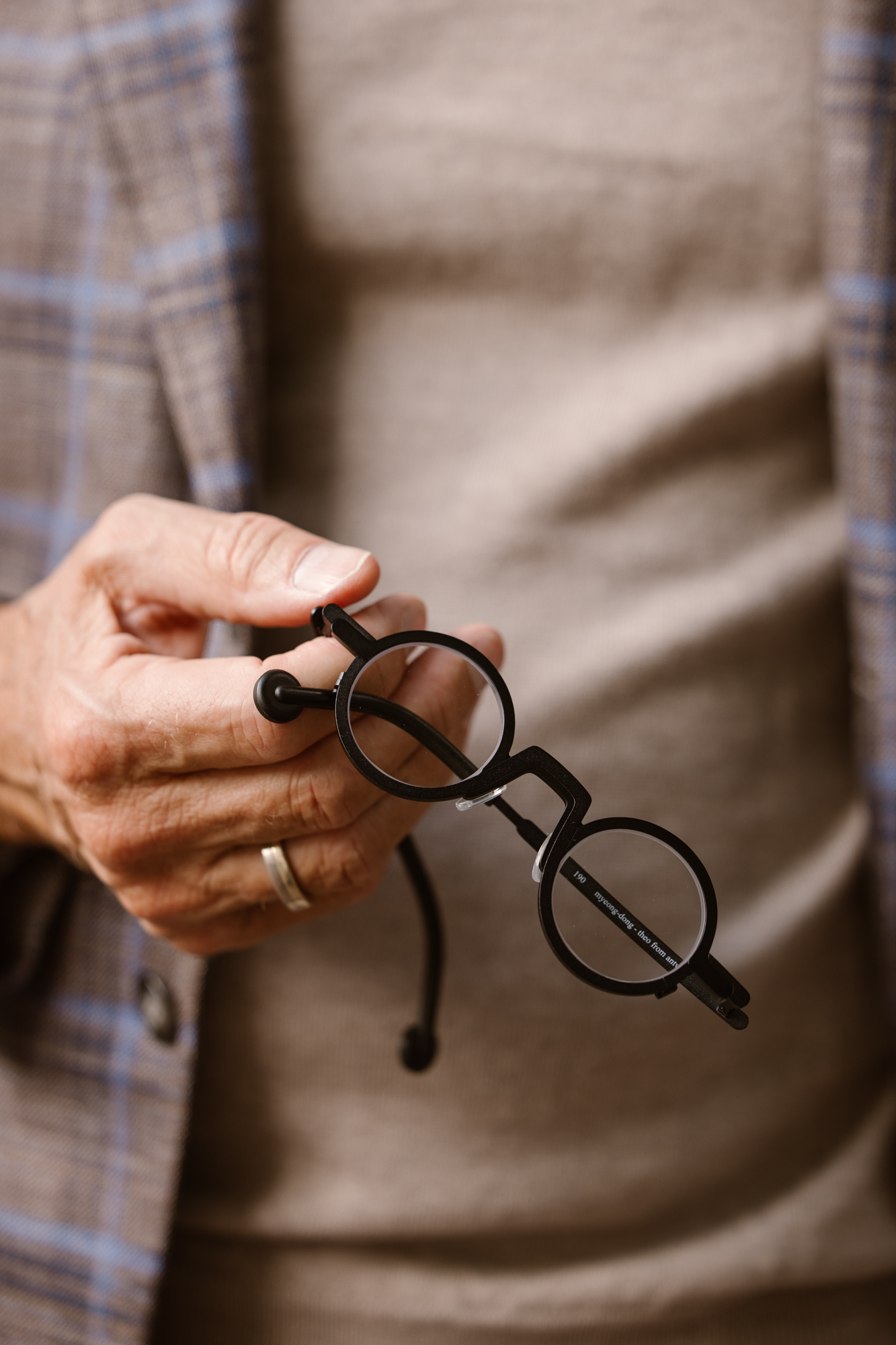 Theo staat bekend om zijn vermogen om klassieke stijlen een moderne twist te geven, wat resulteert in brillen die zowel opvallen als elegant zijn.