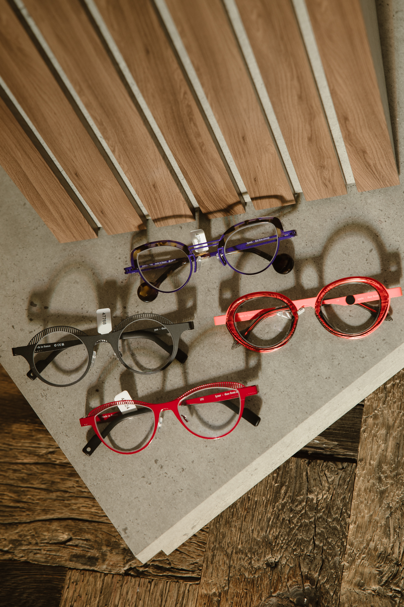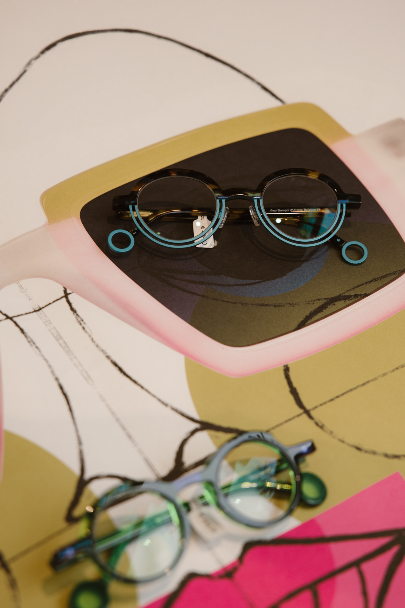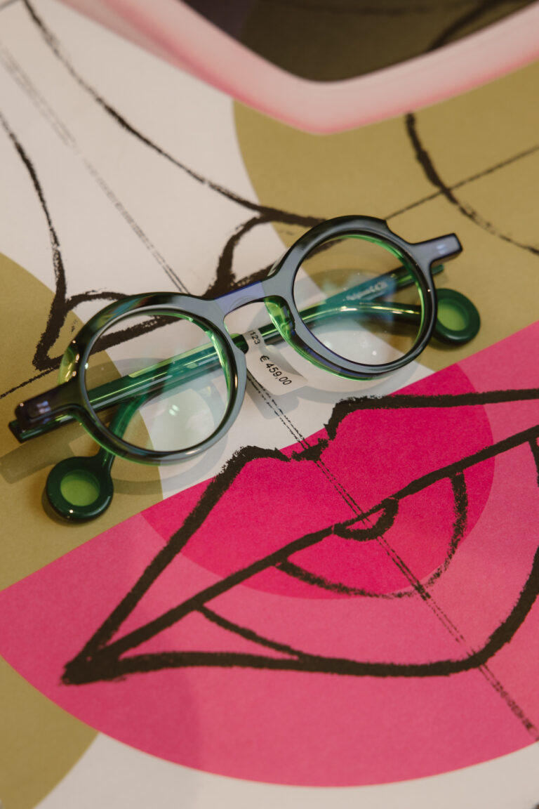 Theo brillen onderscheiden zich door hun speelse, vaak asymmetrische ontwerpen en het gebruik van onconventionele kleuren en vormen. Elk paar is een kunstwerk op zich, vervaardigd met de grootste zorg en precisie uit hoogwaardige materialen zoals acetaat en metaal.